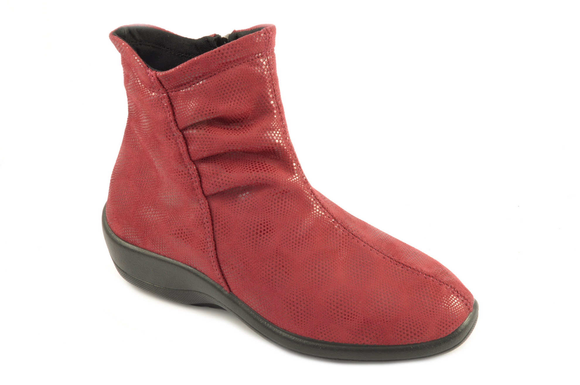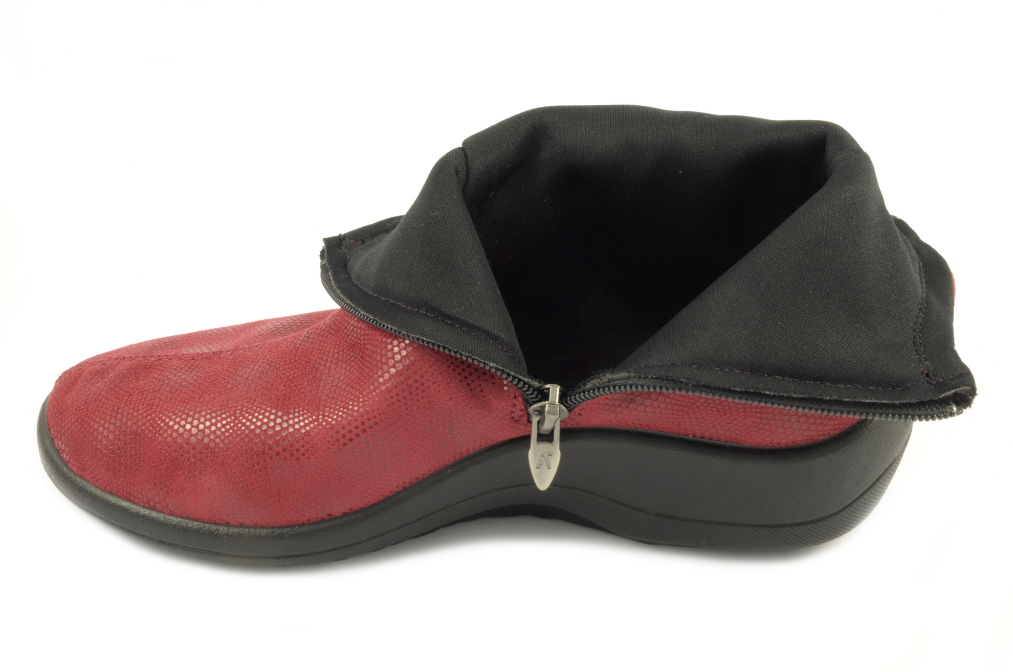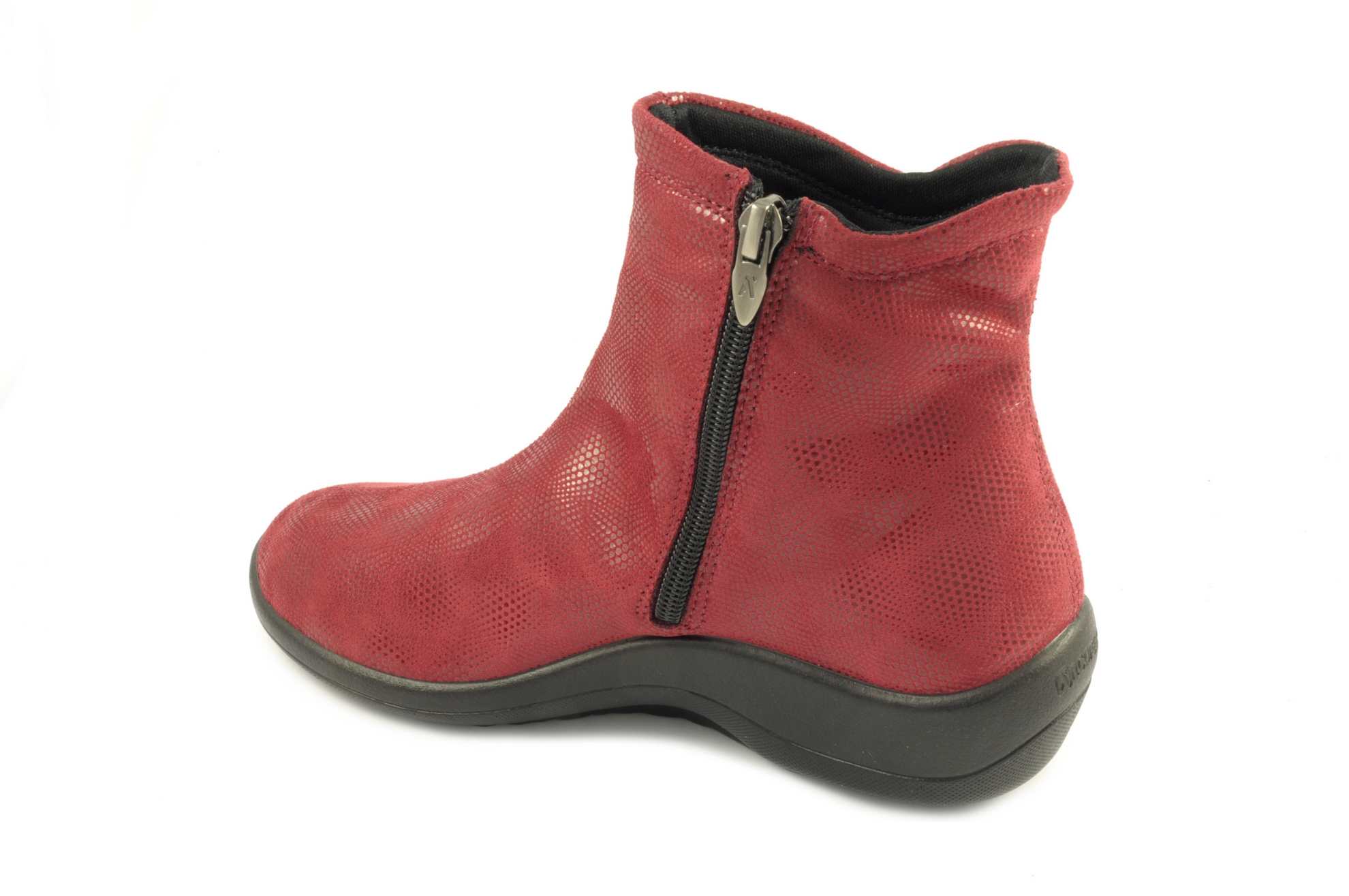 Arcopedico – Botín acabado en tejido elástico con cremallera, admite plantilla ortopédica, calzado de mujer en color rojo