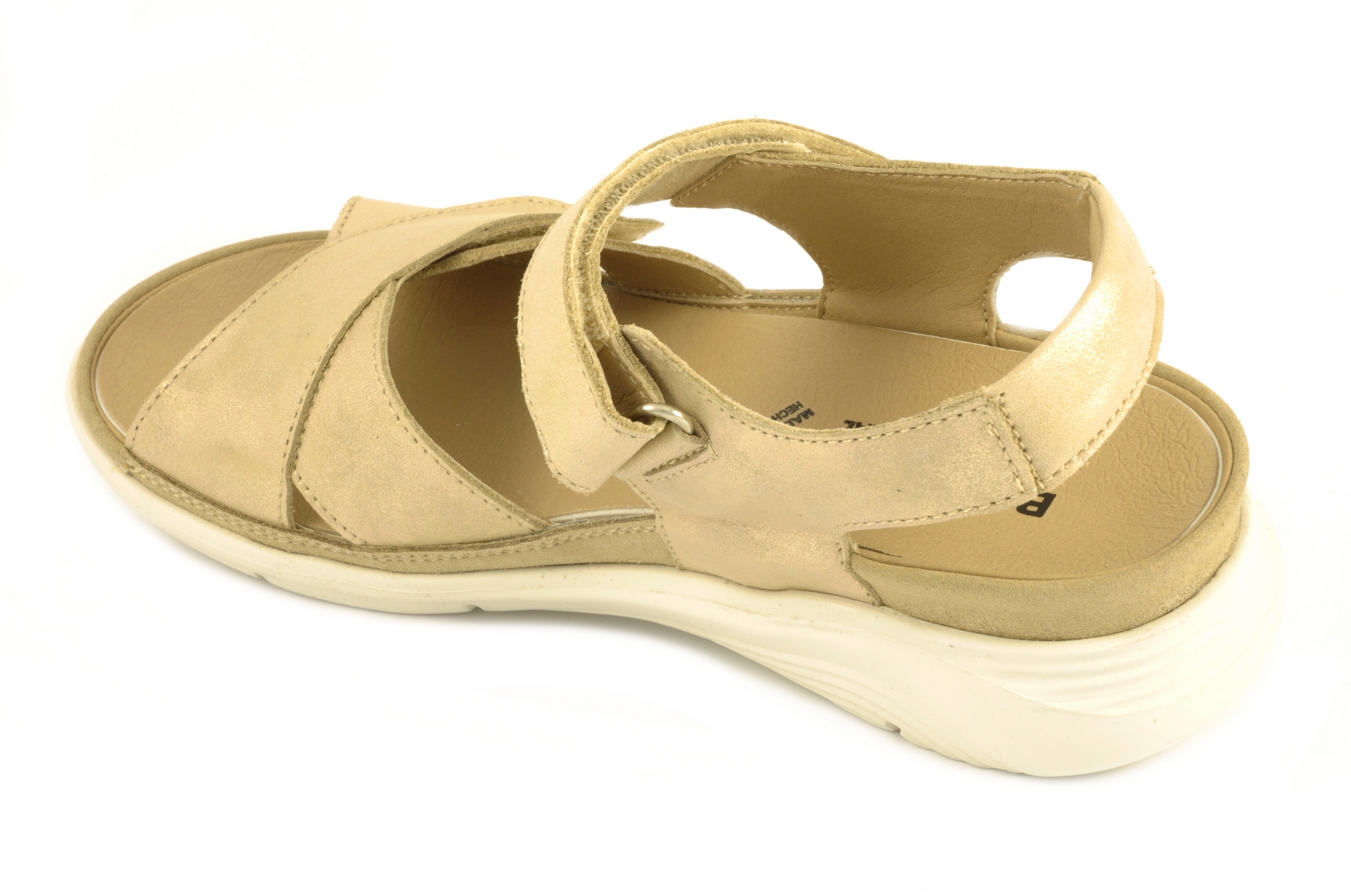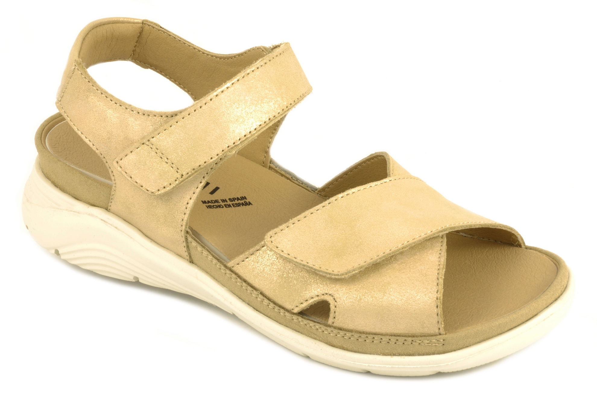 Baerchi – Sandalia con velcro de pasador, admite plantilla ortopédica, calzado para mujer en piel de color dorado