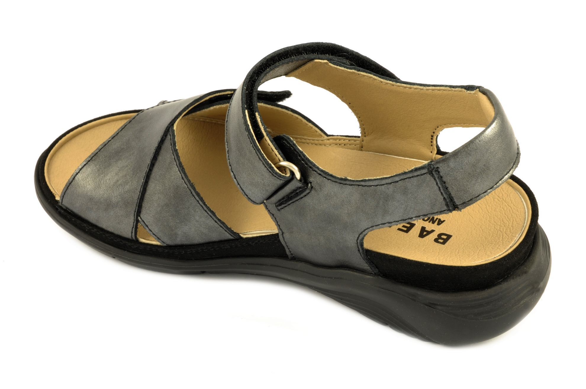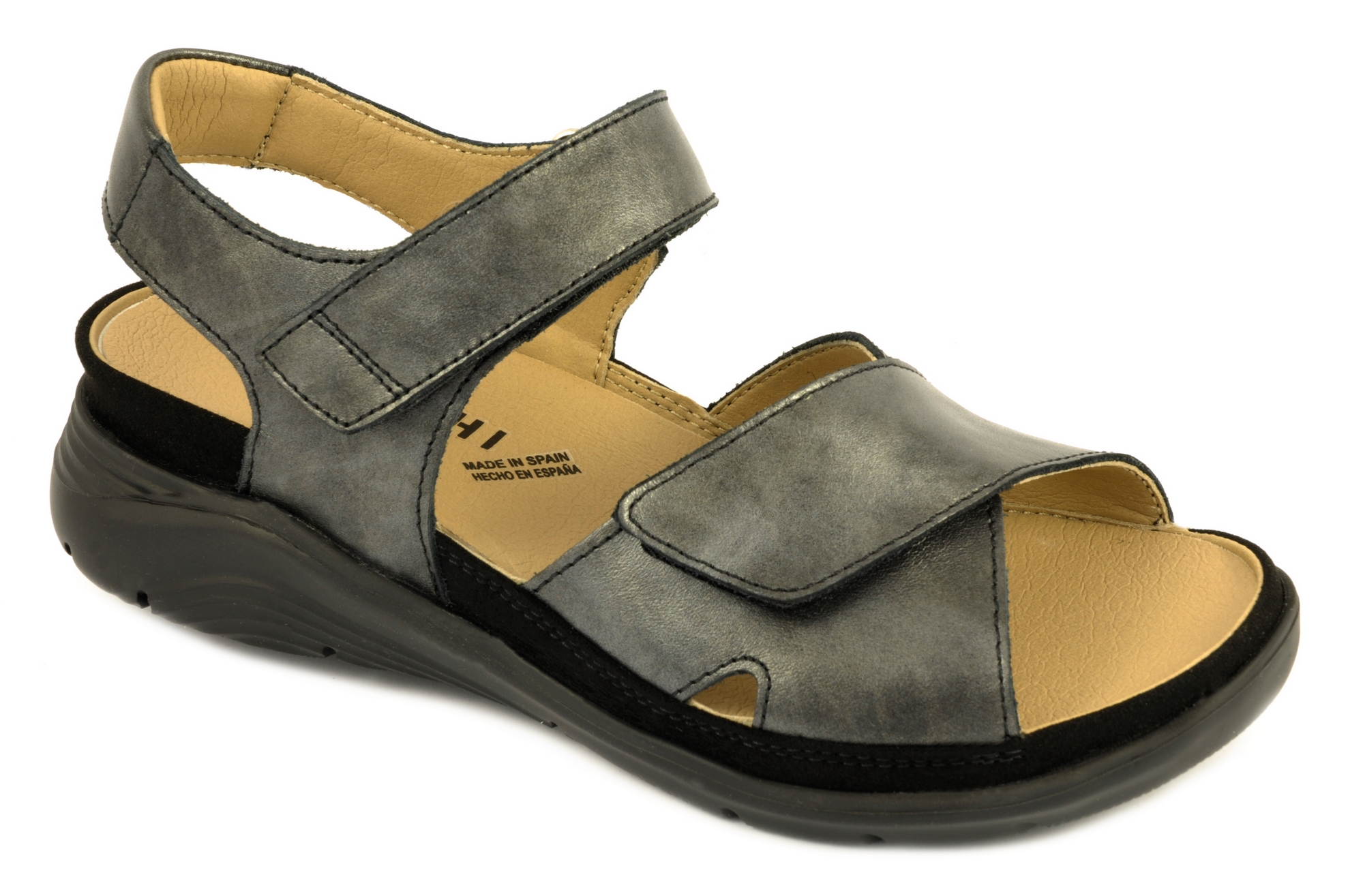 Baerchi – Sandalia con velcro de pasador, admite plantilla ortopédica, calzado para mujer en piel de color negro metalizado