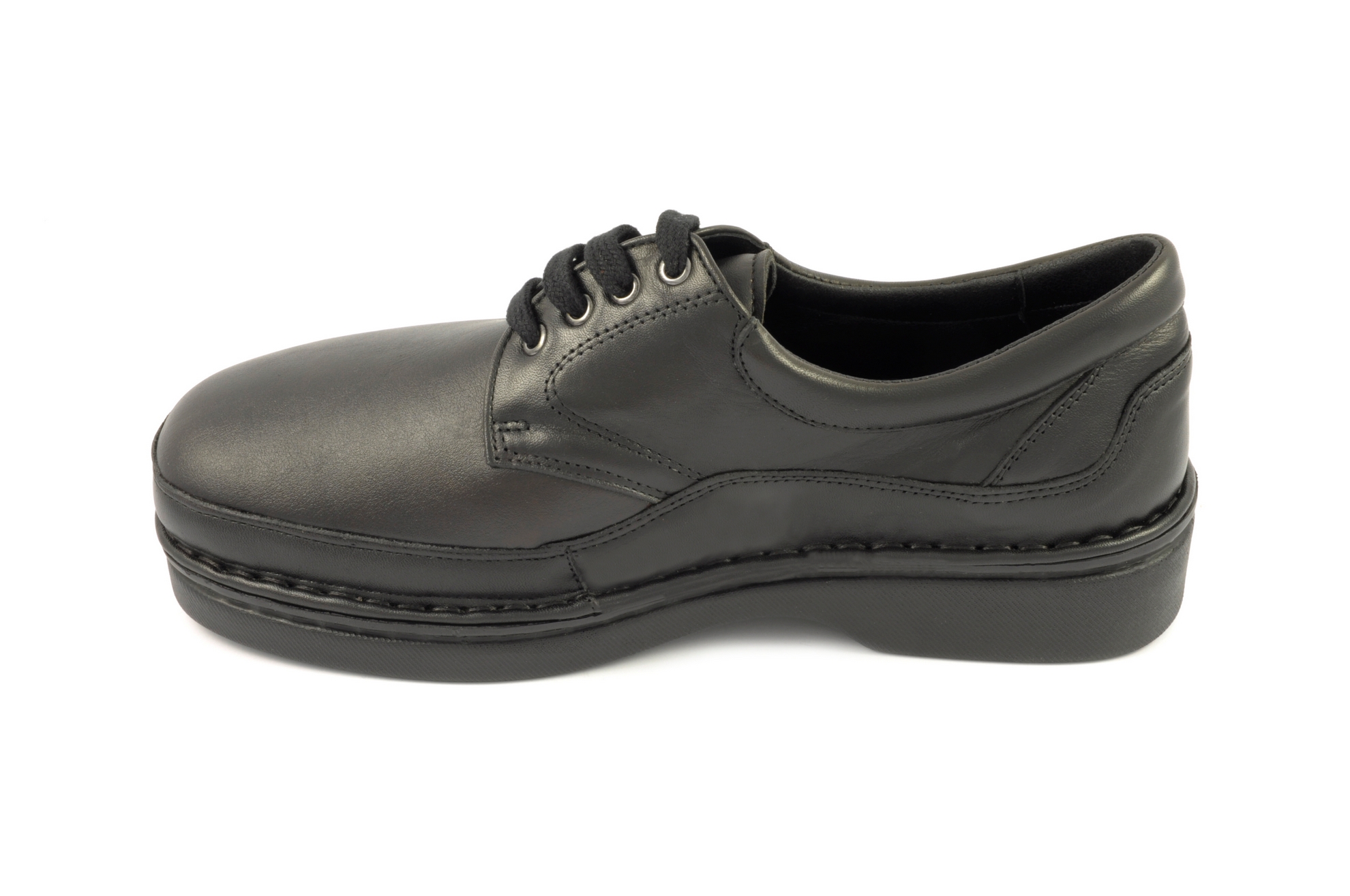 Este modelo tiene una anchura muy superior a la media del calzado de ancho especial. Puede observar, no solamente la amplitud en la zona de la planta del pie, sino también la altura lateral, que contempla la altura en la zona de los dedos y del empeine. Ha sido pensado y concebido, especialmente para aquellas personas que tengan dificultad en calzarse, debido a no encontrar zapatos suficientemente anchos. Pies con dedos deformados, hinchados, o juanetes, gozarán de espacio, gracias a su capacidad. Combina piel, y licra en la zona delantera, la cual abarca los dedos y el empeine, este material tiene la virtud de adaptarse al momento, puesto que es elástico, no se percibe su presencia dado que imita a la piel. En su interior encontramos dos plantillas, una anatómica y otra acolchada, y junto al grosor de la suela, preservará la planta del pie del impacto de la pisada, disminuyendo la fatiga y las molestias ocasionadas por la dureza del terreno. Cabe la posibilidad de colocar plantillas ortopédicas, al extraer las anatómicas de origen. Fabricado por Tamicus en la población de Villena, Provincia de Alicante.