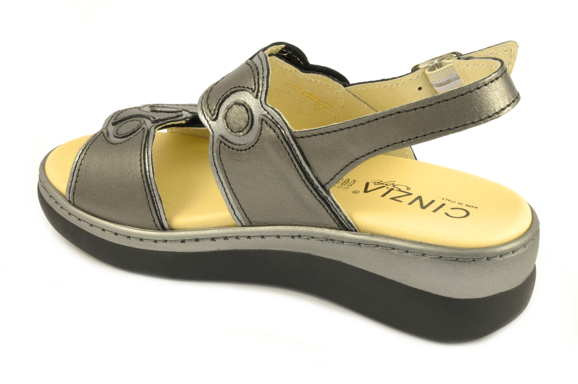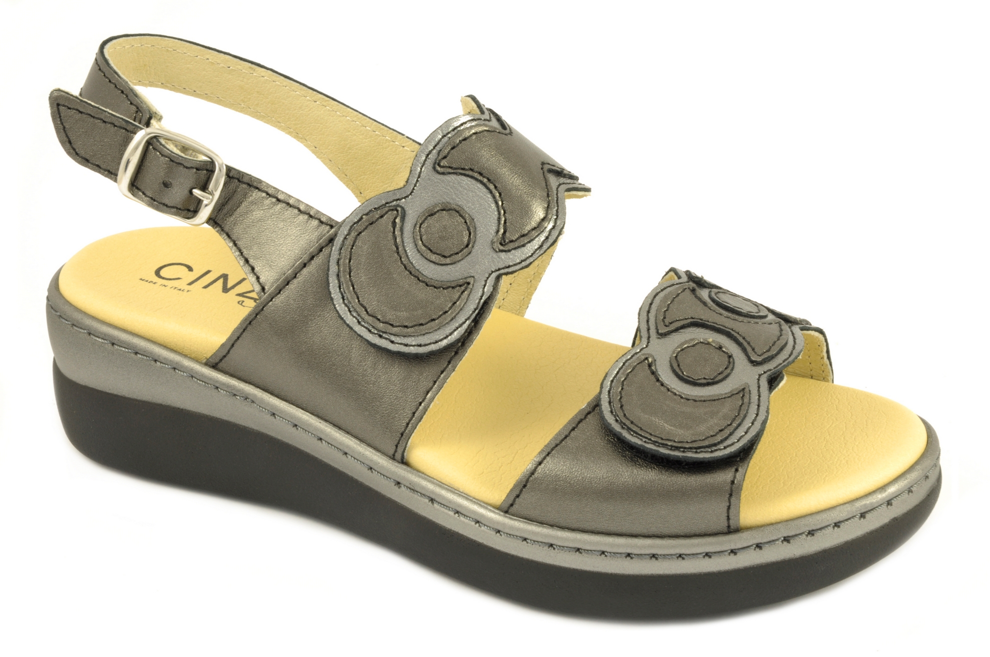 El fabricante italiano Cinzia, utilizando su sandalia más icónica, a creado un nuevo modelo el conserva el alto nivel de confort y frescura. Se ajusta mediante las dos tiras, las cuales incorporan el sistema de sujeción por velcro, por ello, éres tú quien elige el nivel de anchura que necesitas. Pensada para ofrecer un buen apoyo a la planta del pie, dada la amplitud y grosor de la plantilla, la cual también ofrece una buena amortiguación al pisar. En su interior incluye el forro de Sani-pur, este absorbe el sudor y lo mitiga gracias al tratamiento antibacteriano. La tira en la zona del talón incluye una hebilla, esta va fijada a la tira por un elástico, y como resultado la tira no presiona en exceso evitando generar algún roce. No obstante, para calzarse, es preferible utilizar la tira de la parte más alta del empeine, cuesta menos y es más rápida de colocar gracias al velcro y su posición. La plantilla es extraible, si llevas plantillas ortopédicas, retira la de origen y pon la tuya. Cinzia fabrica en Italia con una proyección y un estilo moderno, sin perder de vista que el confort tiene que primar.