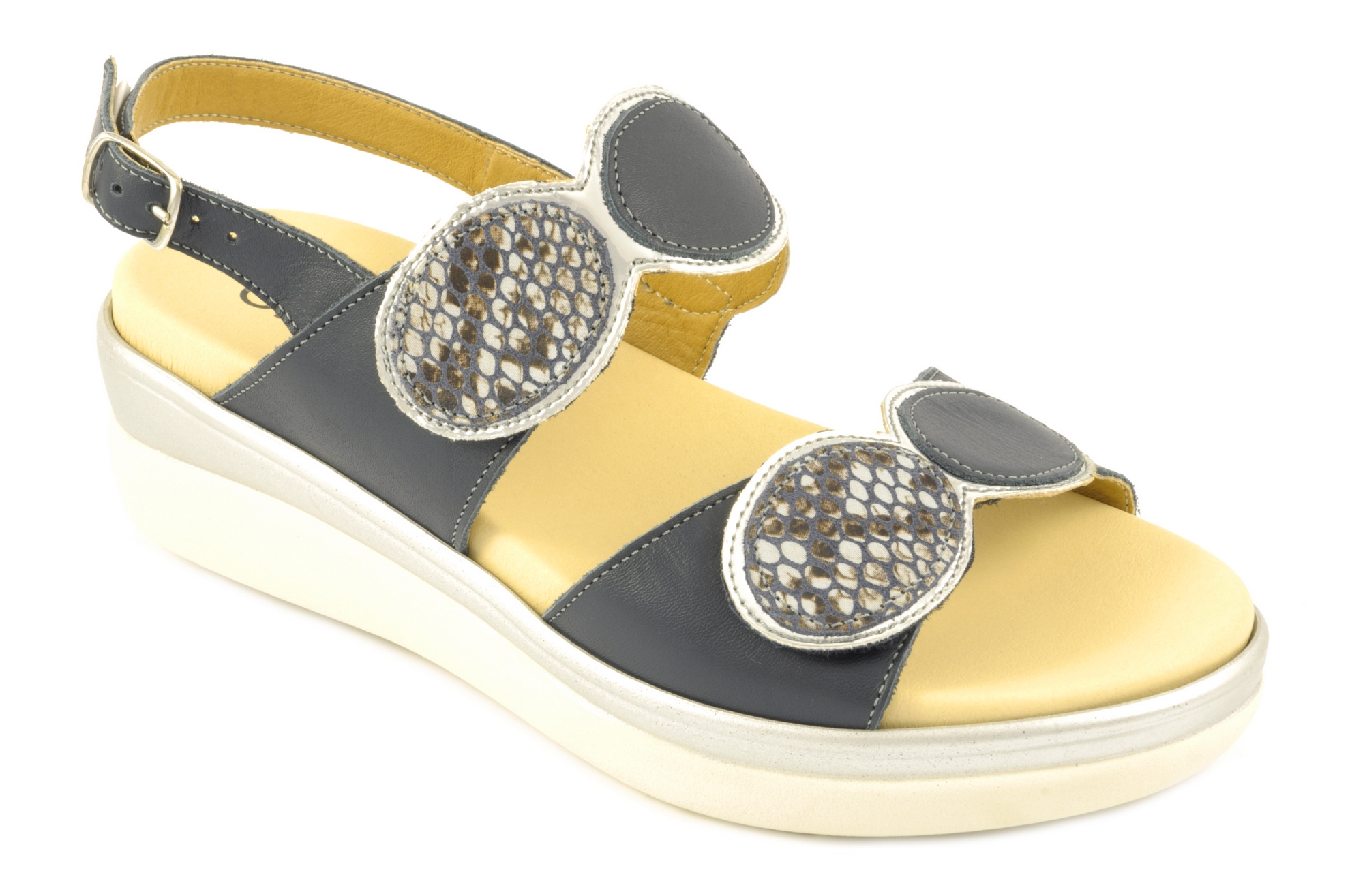 El fabricante italiano Cinzia, este año vuelve a presentar su modelo más icónico, no solo por su diseño, también por el alto nivel de confort. Se ajusta mediante las dos tiras, las cuales incorporan el sistema de sujeción por velcro, por ello, éres tú quien elige el nivel de anchura que necesitas. Pensada para ofrecer un buen apoyo a la planta del pie, dada la amplitud y grosor de la plantilla, la cual también ofrece una buena amortiguación al pisar. En su interior incluye el forro de Sani-pur, este absorbe el sudor y lo mitiga gracias al tratamiento antibacteriano. La tira en la zona del talón incluye una hebilla, esta va fijada a la tira por un elástico, y como resultado la tira no presiona en exceso evitando generar algún roce. No obstante, para calzarse, es preferible utilizar la tira de la parte más alta del empeine, cuesta menos y es más rápida de colocar gracias al velcro y su posición. La plantilla es extraible, si llevas plantillas ortopédicas, retira la de origen y pon la tuya. Cinzia fabrica en Italia con una proyección y un estilo moderno, sin perder de vista que el confort tiene que primar.