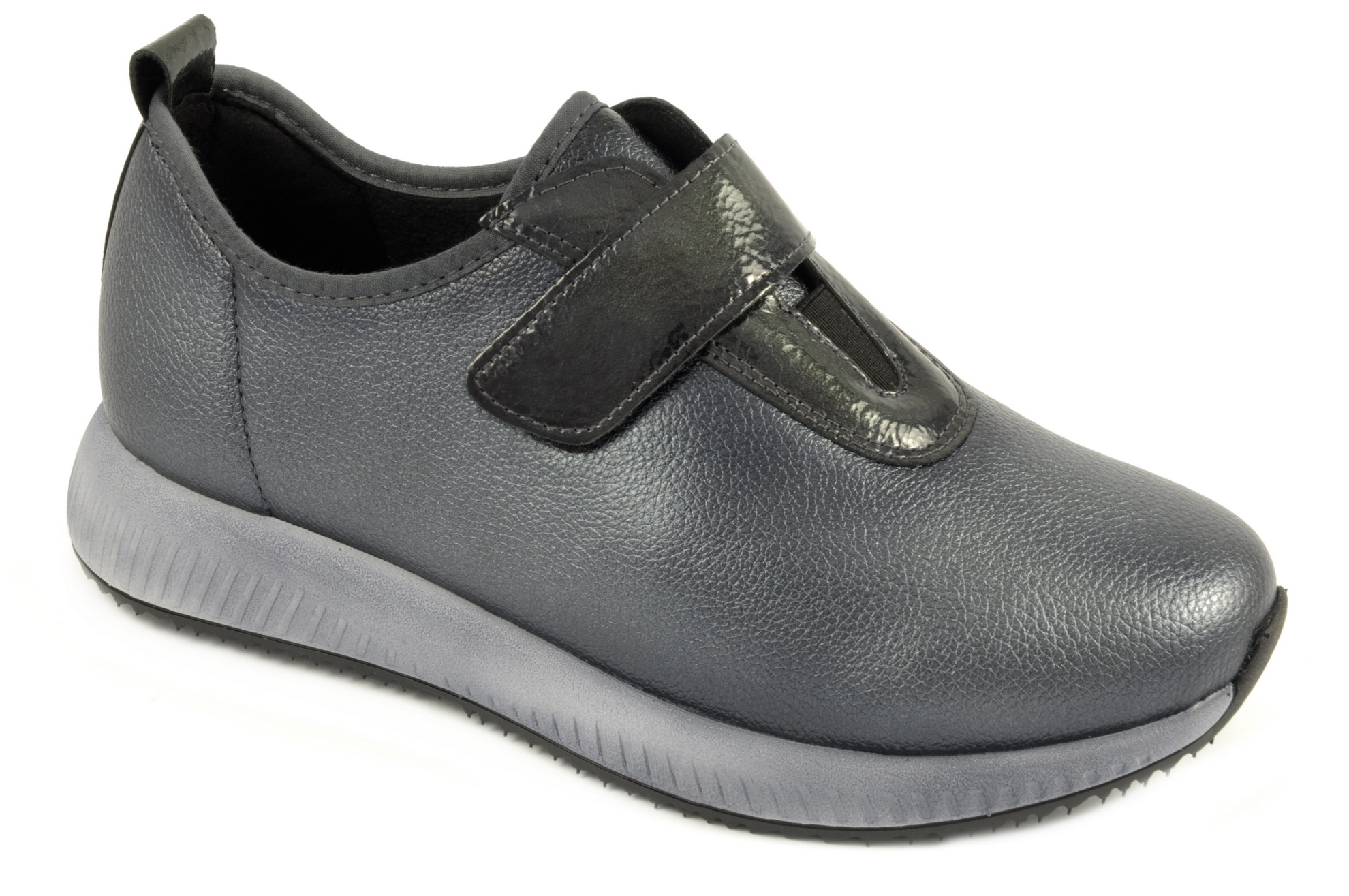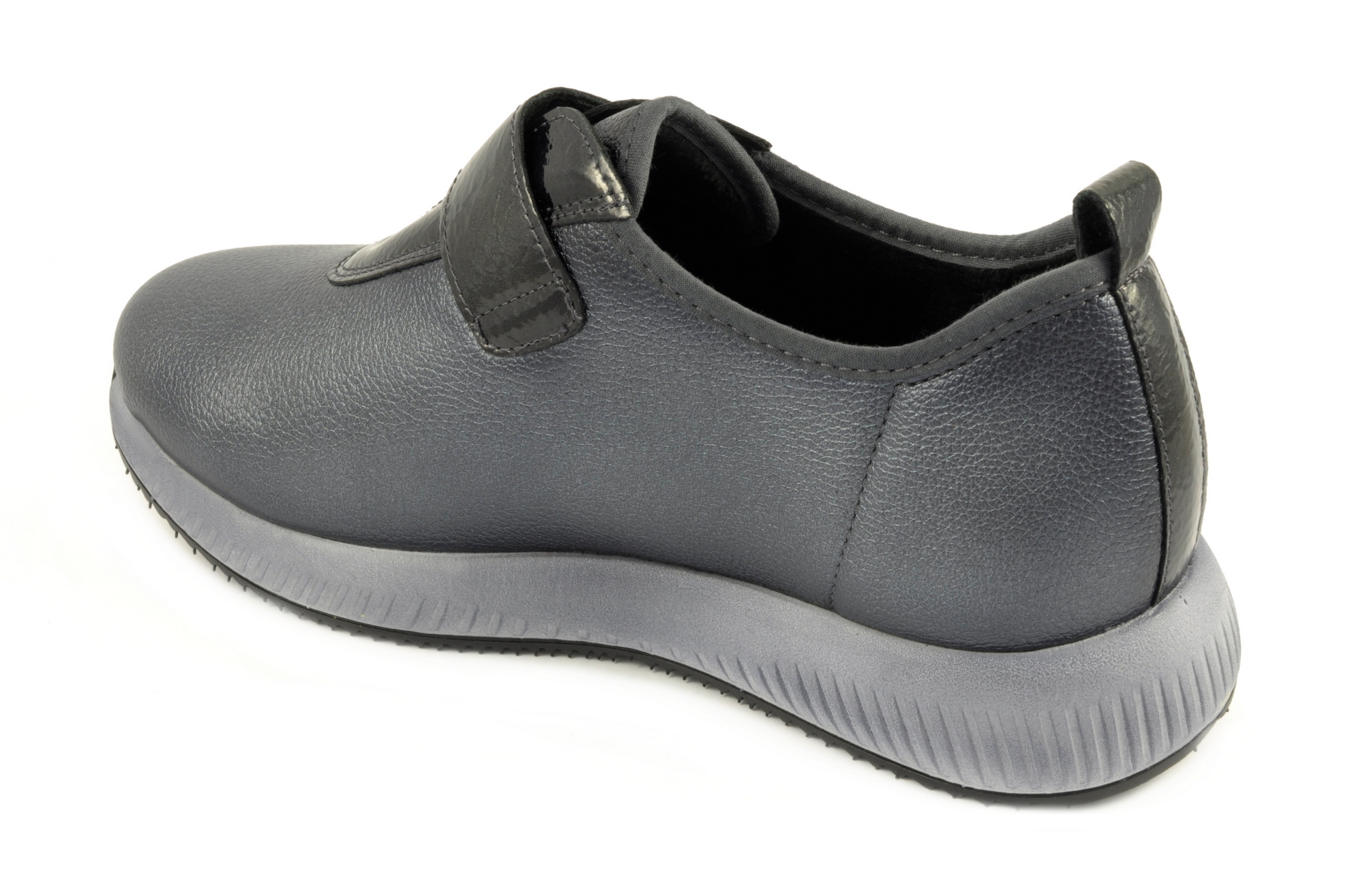 El diseño de este modelo es una mezcla entre un deportivo y un zapato, dada su imagen que busca la sobriedad y cierta elegancia, pero manteniendo un aspecto un tanto desenfadado. Es muy ligero, con un buen nivel de amplitud y el práctico cierre mediante una tira de velcro, siempre fácil y rápida de usar. Acabado en material blando y de rápida adaptación, está pensado para pies delicados. En él puede notar una pisada flexible, la suela tiene un optimo nivel de amortiguación para evitar molestias y fatiga en los pies. Si usted utiliza plantillas ortopédicas, puede acoplarlas al retirar las plantillas anatómicas de origen. Fabricado por Doctor Cutillas, empresa especializada en calzado de confort, ubicada en la Comunidad Valenciana.