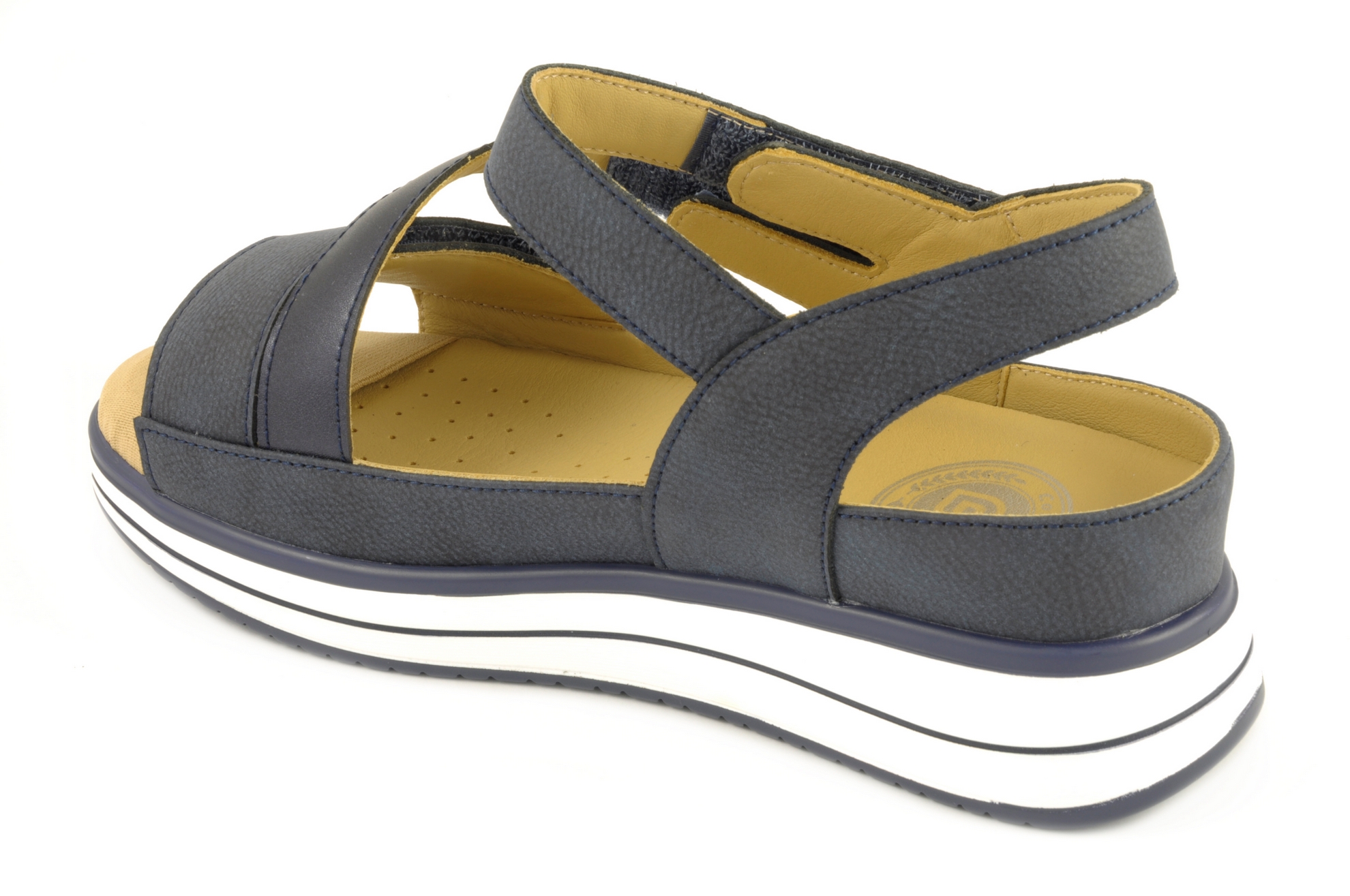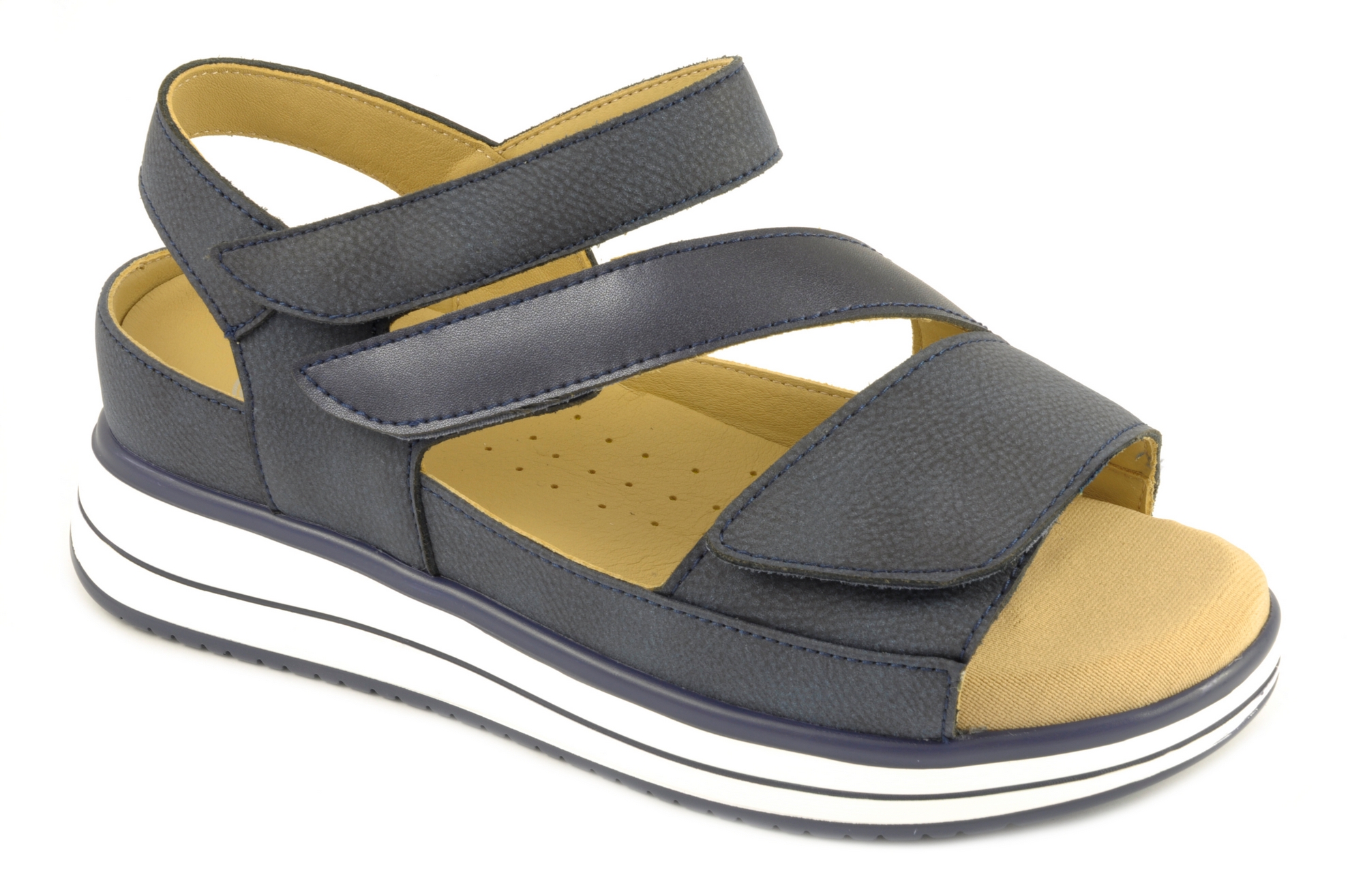 G Comfort – Sandalia con 3 velcros, admite plantillas ortopédicas de tamaño grande, calzado de mujer combinado en piel de color azul marino
