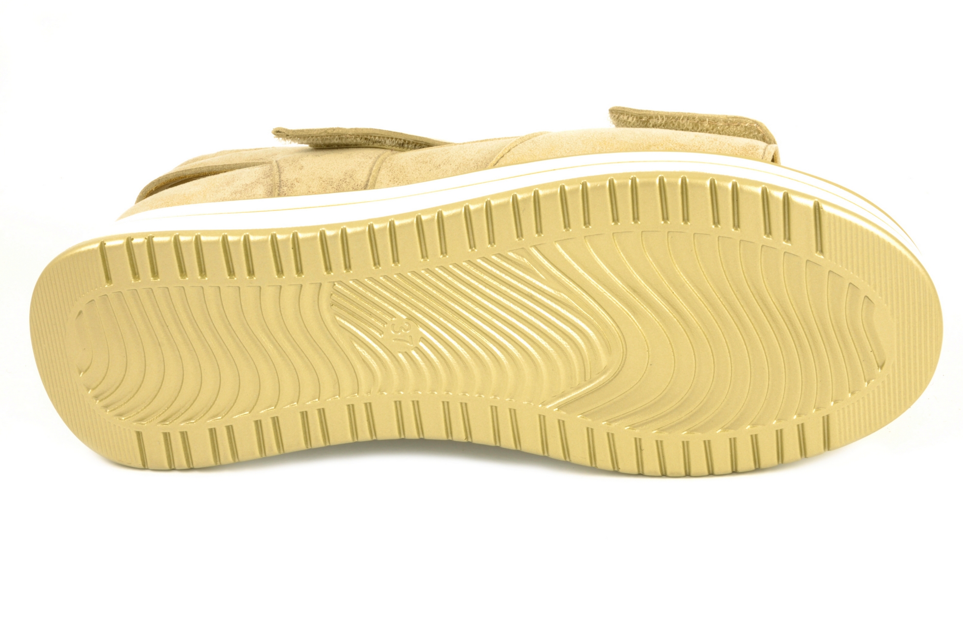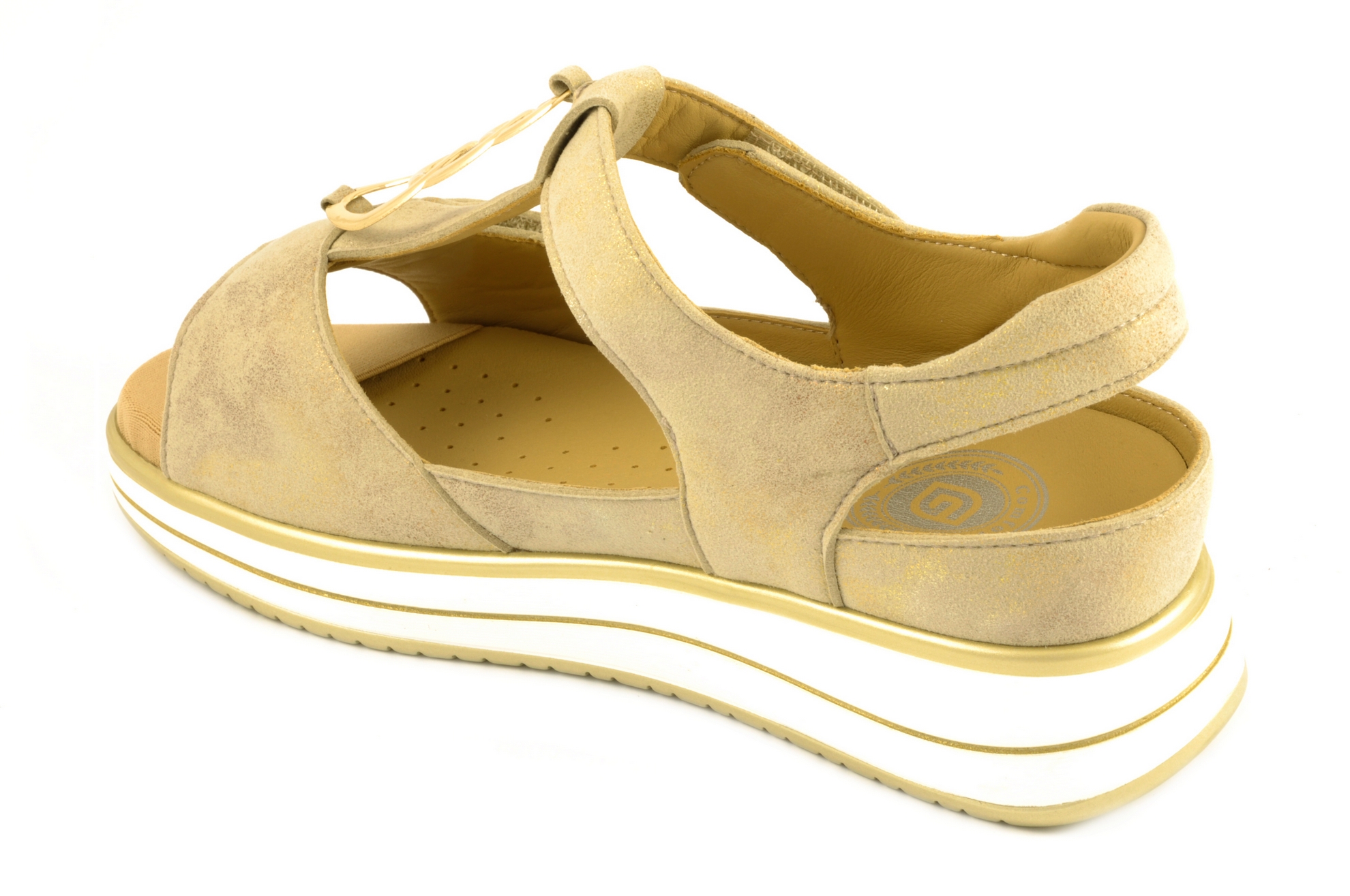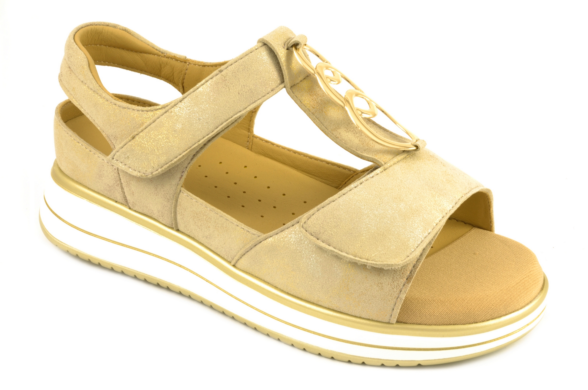 G Comfort – Sandalia con 2 velcros, admite plantillas ortopédicas de tamaño grande, calzado de mujer combinado en piel de color dorado