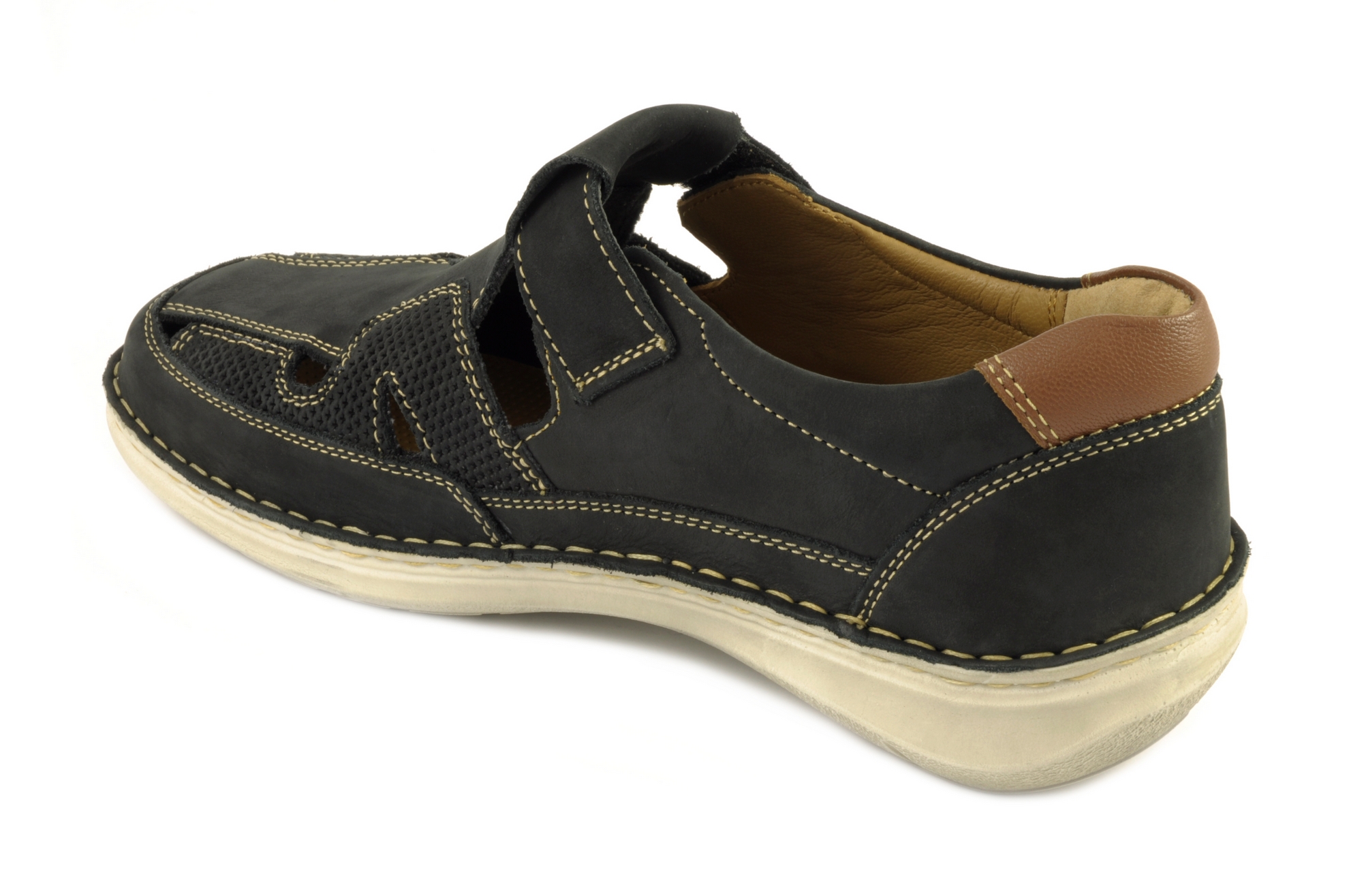 Josef Seibel – Sandalia cerrada con velcro, admite plantilla ortopédica, calzado para hombre en piel de nobuk de color azul
