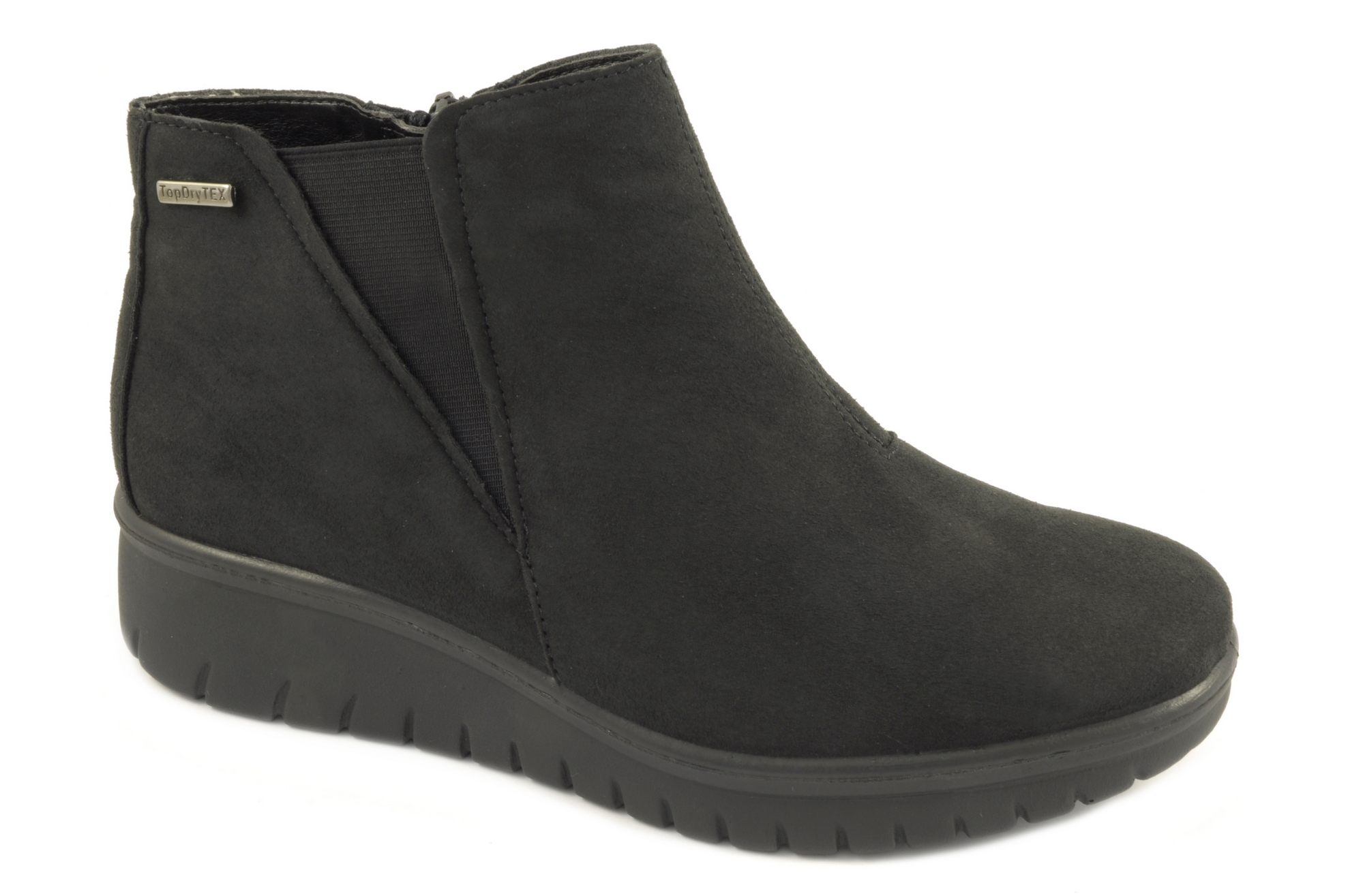 Botín resistente al agua, equipado con el sistema de membrana original TOP DRY TEX, esta membrana de alta calidad no deja penetrar el agua, es resistente al viento y a la vez transpirable gracias a que contiene miles de poros microscópicos. Al estar fabricado íntegramente en tejido el mantenimiento es muy sencillo, basta con cepillar, o pasarle un trapo humedo, en el caso de estar muy sucio puede lavarse a mano con agua fría. El forro es abrigado y junto al grosor del piso, garantizan una buena protección ante las inclemencias del tiempo. Puede observar en la zona exterior del tobillo el siempre práctico y muy útil, elástico, lo cual facilita la entrada del pie, las personas con el empeine alto se beneficiarán de él, puesto que cede al instante. El cierre mediante cremallera le ofrece una optimo ajuste. Cabe la posibilidad de colocar plantillas ortopédicas, al extraer las plantillas anatómicas de origen. Producido por la reconocida empresa alemana Westland, especializada en calzado de confort. En el 2020 ROMIKA a cambió su marca por la de Westland, y actualmente por la marca del grupo empresarial Josef Seibel, siguen produciendo con la misma cálidad y comodidad de siempre. La fiel clientela de la marca encontrará los modelos de continuidad, los de siempre, artículos que año tras año aparecen en la nueva colección de temporada, así como nuevos diseños, nada ha cambiado en su filosofía.