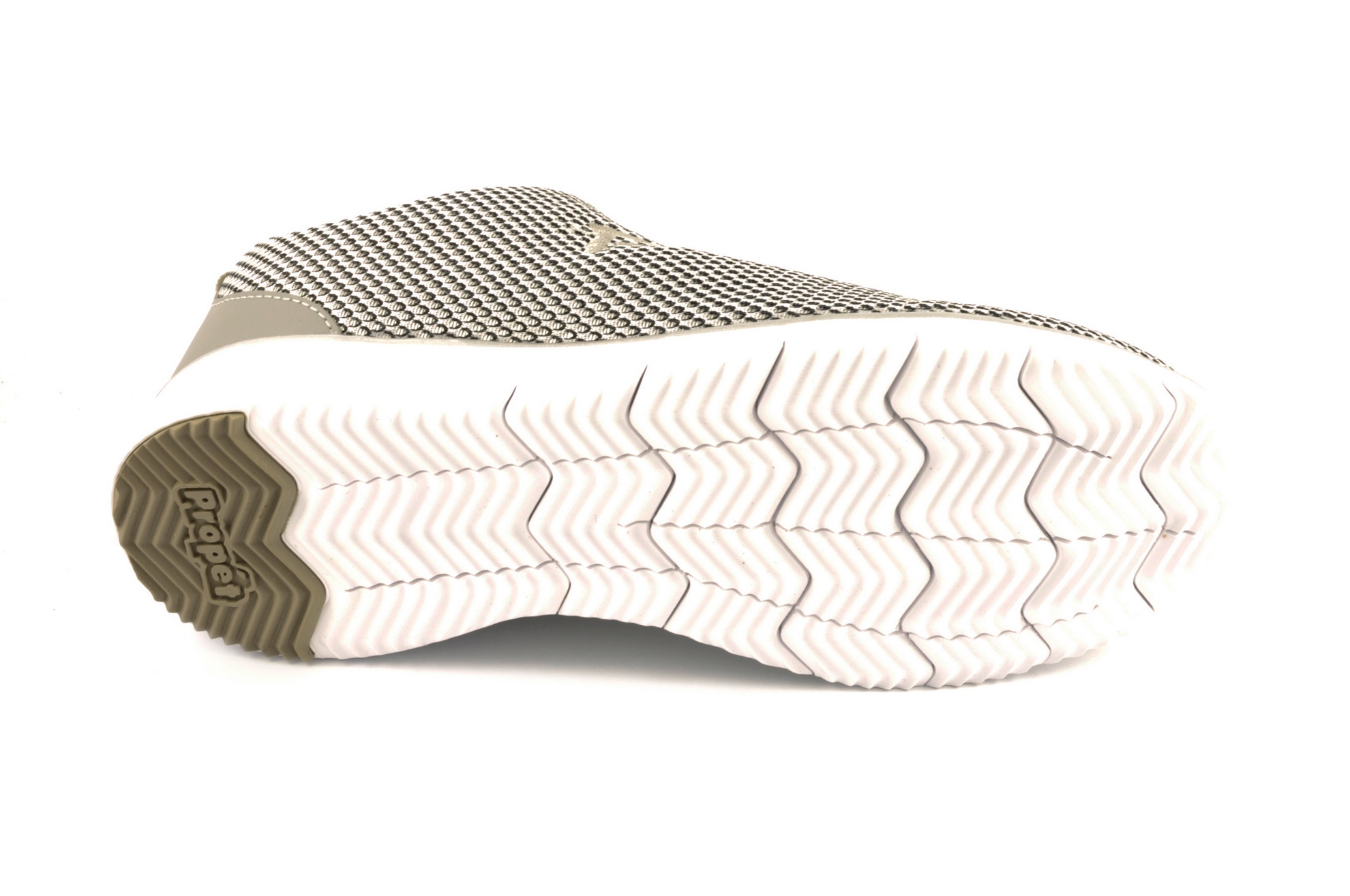 En este deportivo una de las características más destacables que podemos encontrar es el cordón elástico, otra es, que está indicado para los pies que requieren más amplitud para obtener mayor comodidad. El cordón elástico viene acompañado con el cierre por freno, es de los sistemas de ajuste más rápidos y prácticos de utilizar, solo hay que apretar el botón del freno (observe la pieza blanca en la zona del empeine que une el cordón) y deslizarlo hasta notar que el cordón le ajuste, si bien, al tener elasticidad el cordón, puede entrar y retirar el pie sin necesidad de aflojarlo. Es sumamente ligero, su bajo peso le evitará sensación de fatiga incluso después de una larga caminata. Sea cual sea la superficie que pise, el grueso de la suela protege la planta del pie de las irregularidades que pueda encontrar por el camino, como puede darse en un entorno natural, y amortigua el impacto de la pisada cuando se trata de zonas urbanas, donde la dureza del terreno es muy acusada. Tan liviano como resistente, se adapta con suma facilidad al estar fabricado con materiales textiles muy blandos, garantizando un buen descanso para sus pies y un alto nivel de transpiración. Tiene la posibilidad de colocar plantillas ortopédicas, al extraer las plantillas anatómicas de origen. Propét es una marca Norteamericana que nace en 1985, perteneciente al Grupo Indis.
