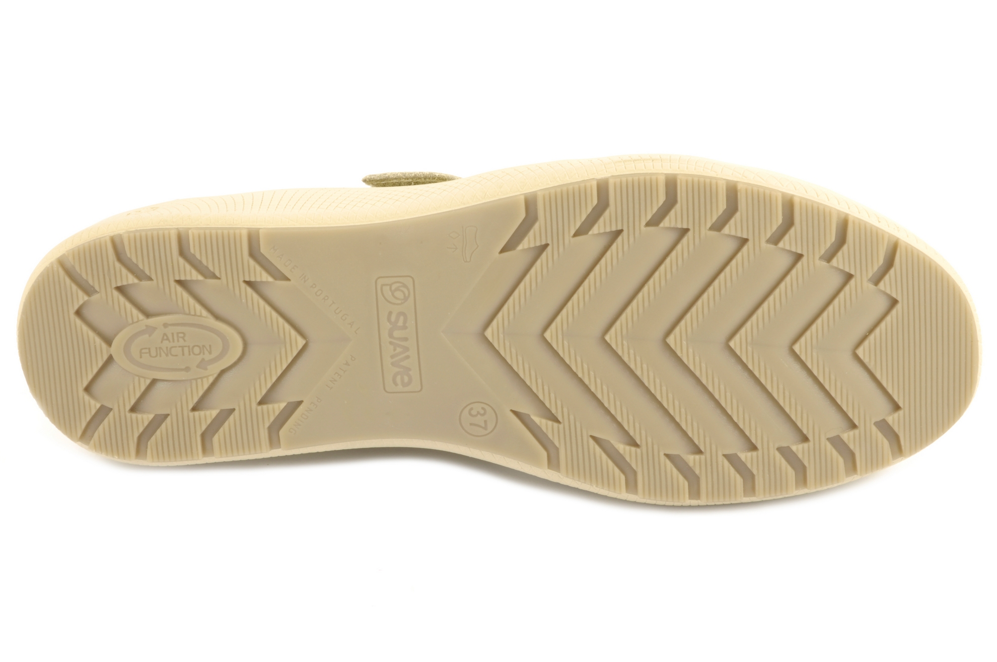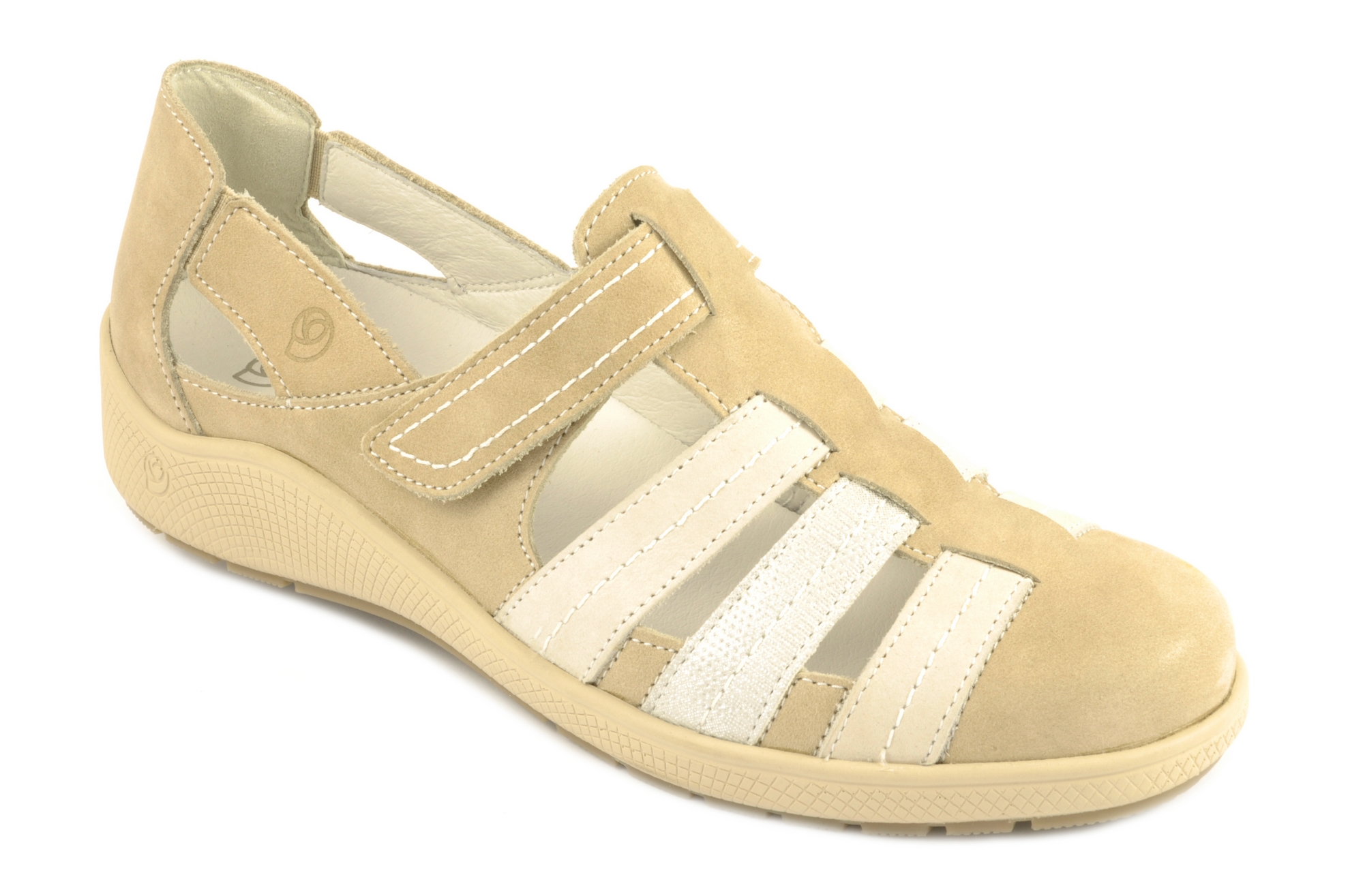 Suave – Sandalia cerrada con tiras y velcro para mujer, admite plantilla ortopédica, combinada en piel de color arena