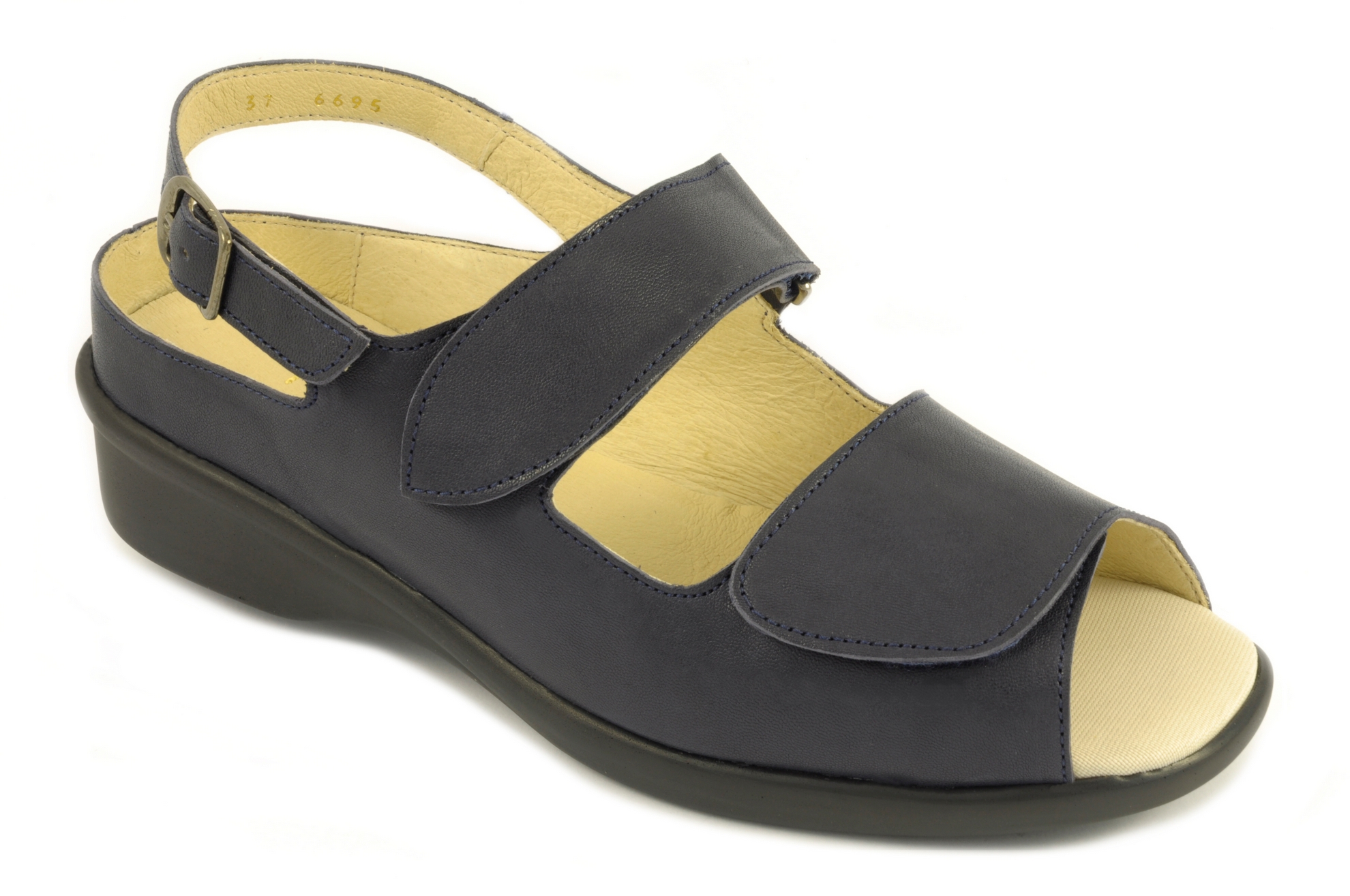Trimas – Sandalia de plantilla ortopédica con velcro de tira vuelta para mujer, en piel de color azul
